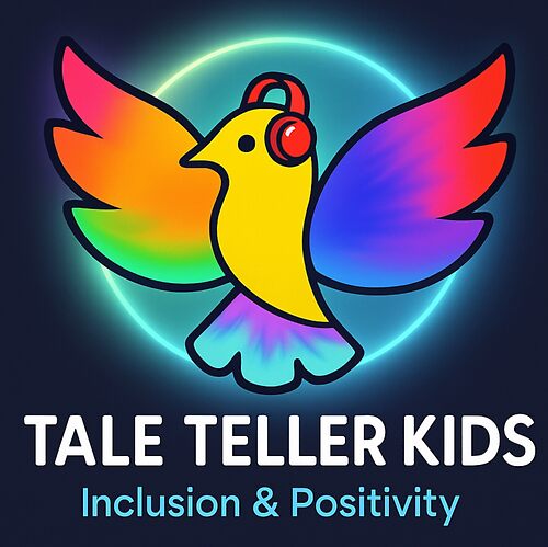 Tale Teller Kids Neurodivergence Logo Rainbow Bird In Headphones